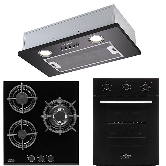 Три элемента в комплекте - это очень удобно. Вытяжка, варочная панель и духовой шкаф - все, что нужно для комфортной работы на кухне.