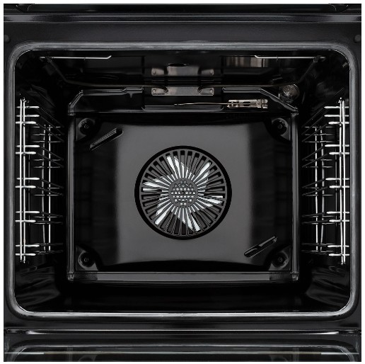 Мощный вентилятор создает воздушную оболочку вокруг корпуса духового шкафа. Движущийся воздух препятствует утечке тепла и позволяет защитить от перегрева поверхность прибора и кухонную мебель, в которую он установлен.