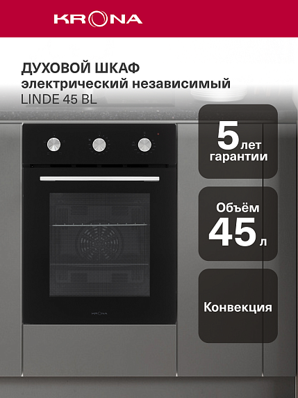Духовой шкаф Krona Linde 45 BL — это сочетание стиля, функциональности и надежности. Его производительность и эффективность обусловлены мощностью в 2.05 кВт, что позволяет быстро и равномерно нагревать пищу. Класс энергопотребления A гарантирует экономное использование электроэнергии.