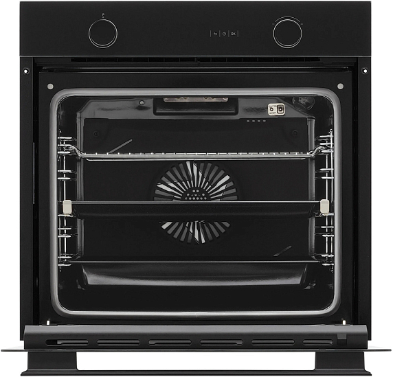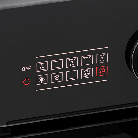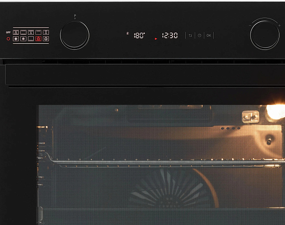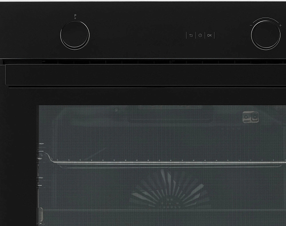 Полезный объем духового шкафа составляет 78 литров, что позволяет готовить большие порции блюд одновременно. Максимальная мощность потребления составляет 2.475 кВт, а мощность гриля - 2.45 кВт. При этом устройство относится к классу энергопотребления A, что говорит о его энергоэффективности. Управление духовым шкафом осуществляется с помощью поворотных утапливаемых элементов. На дисплее отображается вся необходимая информация о режиме работы устройства. Прибор оснащен таймером на отключение, звуковым сигналом и часами для удобства использования.
