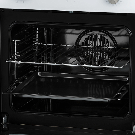 Размер: 60 см, Тип духового шкафа: электрический, Цвет: белый, Полезный объем, л: 68, Телескопические направляющие: есть