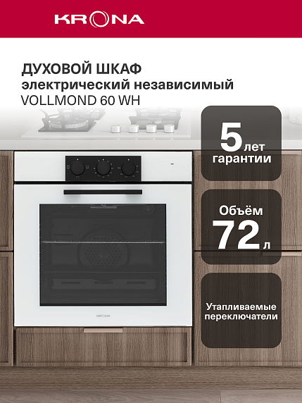Электрический духовой шкаф KRONA Vollmond 60 WH — это современное решение для любителей кулинарии и стильного дизайна. Сочетание функциональности и эстетики в одном устройстве. Внешний вид устройства поражает своей простотой и изяществом. Белый цвет корпуса из закаленного стекла подчеркивает чистоту и свежесть, а также легко вписывается в любой интерьер кухни. Размеры устройства составляют 59.5 см в высоту и ширину, а глубина — 56.8 см, что делает его универсальным решением для встраивания в кухонные гарнитуры.