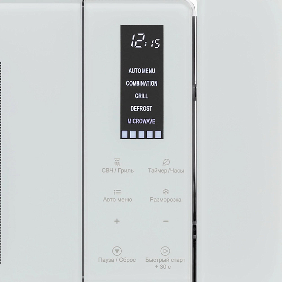 Устройство оснащено сенсорным управлением, что делает его использование максимально удобным и простым. На дисплее отображается всю необходимую информацию, а блокировка управления обеспечивает безопасность при использовании печи детьми. Открывание дверцы осуществляется с помощью кнопки, что обеспечивает легкость и удобство использования. Мощность микроволн составляет 800 Вт, а мощность гриля - 0.8 Вт. Это позволяет быстро и равномерно разогревать пищу, а также приготовить вкусные и здоровые блюда на гриле. Печь оснащена функцией разморозки по весу, что позволяет максимально сохранить полезные свойства продуктов.