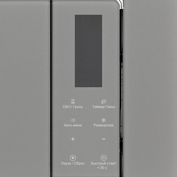 Модель оснащена грилем, что расширяет возможности приготовления блюд. Мощность микроволн составляет 800 Вт, мощность гриля также равна 800 Вт. Это гарантирует быстрое и равномерное приготовление пищи. Встроенный таймер позволяет точно контролировать время приготовления, а блокировка управления обеспечивает безопасность использования. Одной из особенностей модели является наличие 6 рецептов автоприготовления. Вы с легкостью сможете приготовить мясо, овощи, пасту или рыбу, а также воспользоваться функцией разморозки по весу. Управление печью осуществляется с помощью сенсорного дисплея, что делает процесс управления простым и удобным.