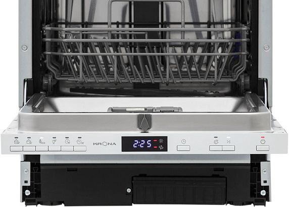 Встраиваемая посудомоечная машина KRONA WESPA 45 BI оснащена функцией луч на полу, он означает что устройство работает. Также имеется полна защита от любых протечек AquaStop. Имеется 3 уровень загрузки для столовых приборов.