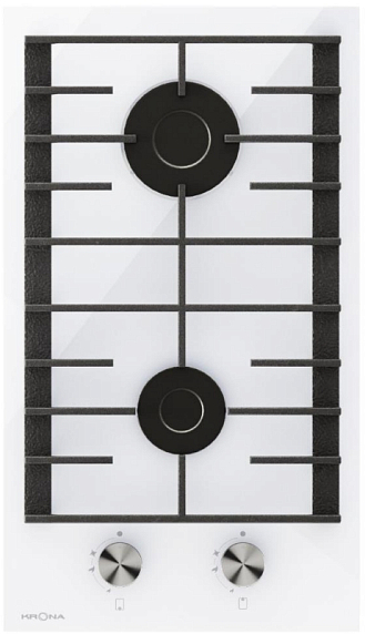 Размер: 30 см, Тип панели: газовая, Цвет: белый, Материал: закаленное стекло, Количество зон нагрева: 2