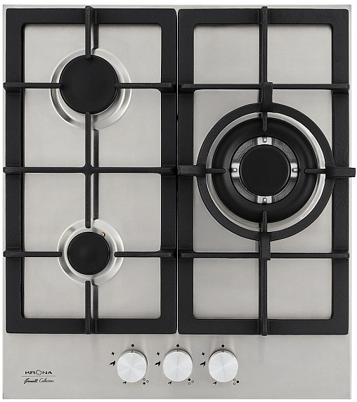 Удобное расположение 3-х конфорок, которые предполагают возможность использования любой посуды для приготовления блюд. Мощность одной 1 кВт, а двух других — 1,75 и 3,8 киловатт. Одна из них обладает конструкцией «Тройная корона» и оборудована подставкой под вок-сковородки. Эта экспресс-конфорка она имеет три кольца пламени и предназначена для наиболее интенсивного нагревания. С помощью нее вы сможете создать атмосферу ресторана на домашней кухни и готовить блюда азиатской кухни в специальных сковородах, использовать казан и другую посуду с толстыми стенками.