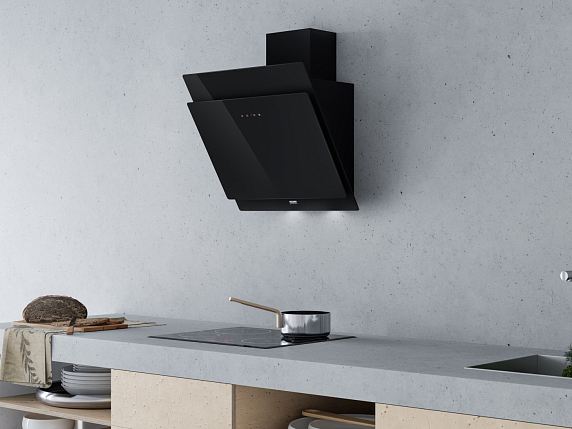 Размер: 60 см, Тип вытяжки: наклонная, Цвет: черный, Количество скоростей: 3, Освещение: галогенное, Производительность, м3/ч: 750, Уровень шума (min), дБ: 39