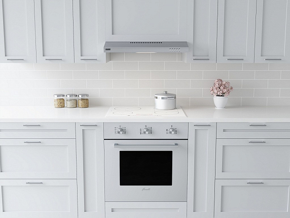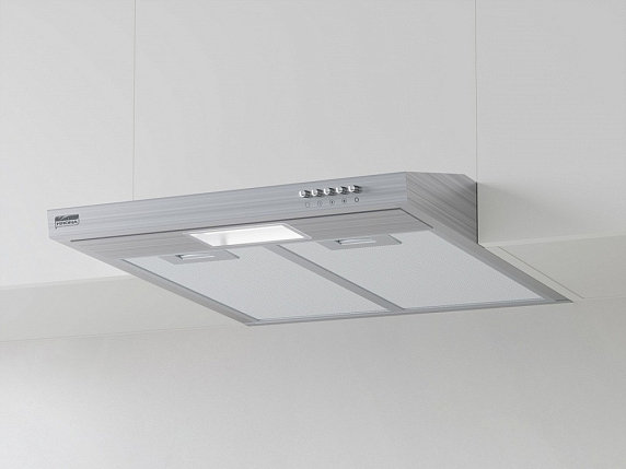 Козырьковая вытяжка может как отдельно крепиться к стене кухни, так и устанавливаться под навесным шкафом, что позволяет экономить пространство. Данный тип устройства в основном используется в относительно небольших по площади помещениях. Такие приборы достаточно экономичные и малошумные.