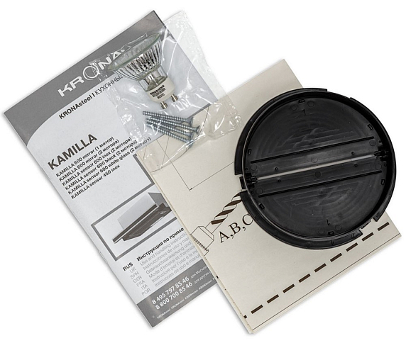 У этой модели есть удобная и простая в освоении сенсорная панель управления, предназначенная для регулирования интенсивности всасывания. Данное устройство оснащено двумя галогенными лампочками, которые служат для яркого освещения варочной поверхности. В комплектации предусмотрено два специальных жироулавливающих фильтра, препятствующих скоплению устойчивых загрязнений на моторах и других внутренних элементах благодаря этому прибор надежно защищён от риска возникновения поломки.