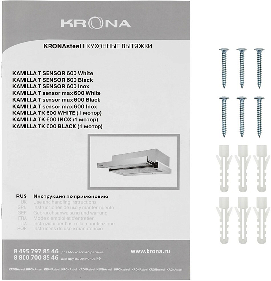 Устройство оборудовано одним жироулавливающим фильтром, который эффективно улавливает жир и грязь, предотвращая их попадание в воздуховод. Для работы в режиме рециркуляции можно приобрести отдельно угольные фильтры Krona TN, которые эффективно удаляют запахи и очищают воздух. Вытяжка KRONA KAMILLA TK 600 Black легко встраивается в подвесной шкаф, что позволяет экономить пространство на кухне. Производитель предоставляет гарантию на 60 месяцев, что подтверждает высокое качество и надежность этой модели.