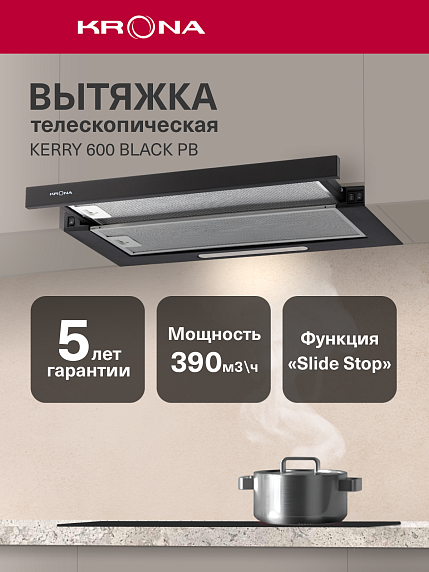 Вытяжка Krona Kerry 600 Black PB — это стильное и функциональное устройство, которое станет неотъемлемой частью любой современной кухни. Ее дизайн сочетает в себе элегантность и практичность, что делает вытяжку не только полезным, но и эстетически привлекательным элементом интерьера. Основной цвет вытяжки — черный, что придает ей современный и элегантный вид. Несмотря на свою простоту, она выглядит стильно и дорого. Материал изготовления — металл, что гарантирует долгий срок службы и устойчивость к повреждениям. Особенности и функции данного устройства делают его неотъемлемым помощником на кухне.