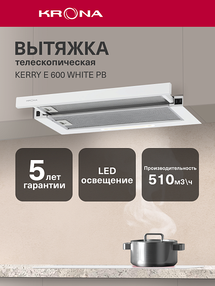 Вытяжка Krona Kerry E 600 White PB - это современное и функциональное решение для вашей кухни. Она принадлежит к серии OPTIMA и представляет собой встраиваемый тип вытяжки, который устанавливается в подвесной шкаф, обеспечивая оптимальное использование пространства. Дизайн вытяжки выполнен в строгом и лаконичном стиле. Белый цвет и металлический корпус делают ее универсальным элементом, который гармонично впишется в любой интерьер. Клавишное управление обеспечивает удобство и простоту использования, а три скорости работы позволяют выбирать оптимальный режим в зависимости от интенсивности приготовления пищи.
