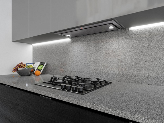 Встроенные светодиодные лампы создают на кухне комфортную обстановку. Не потребляя при этом много электроэнергии. Простая система управления даёт возможность быстро выбирать требуемый уровень производительности, а также включать турборежим и освещение.