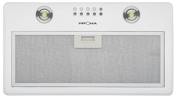 Встраиваемая вытяжка KRONA RUNA 600 White PB устанавливается в специальный шкафчик и остаётся почти незаметной — вы можете увидеть только её нижнюю панель. Благодаря этому она хорошо сочетается с современным и классическим оформлением интерьера.