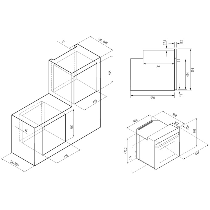 Схема встраивания для духового шкафа Krona SONATA 45 WH G2
