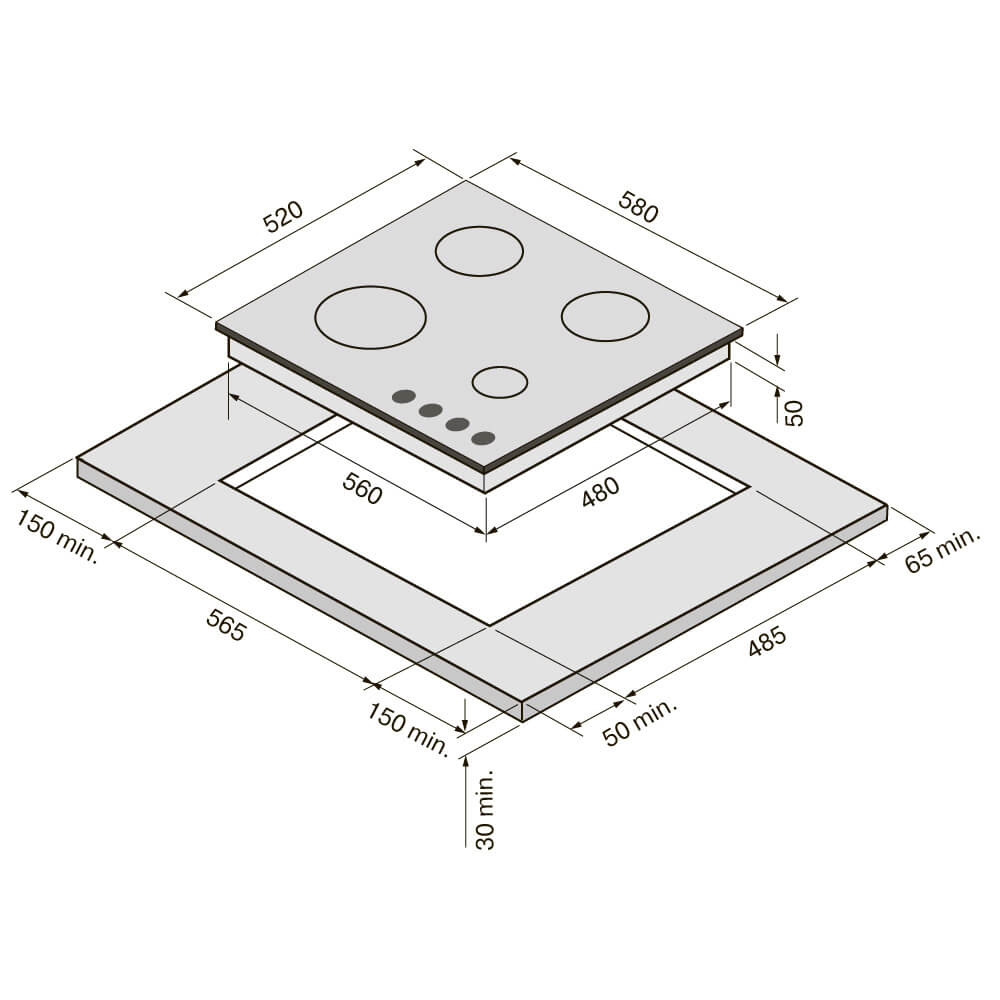 Схема встраивания для варочной панели Krona NEBEL 60 WH W