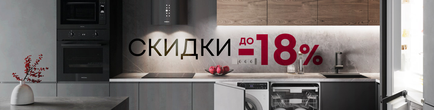 Акция завершена! С 15 мая по 24 декабря 2025 года при покупке комплекта встраиваемой техники Krona — скидки до 18%.